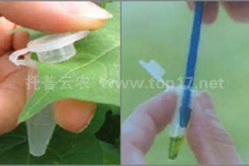 1. 將植物葉片組織置于一次性組織提取管的蓋子與管身之間,迅速蓋住蓋子,得到圓形葉片組織,用杵將葉片置于提取管底部。用記號(hào)筆在管壁做好標(biāo)記。