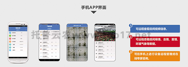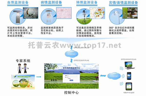 農(nóng)作物病蟲(chóng)害實(shí)時(shí)監(jiān)控物聯(lián)網(wǎng)設(shè)備系統(tǒng)包含遠(yuǎn)程拍照式蟲(chóng)情測(cè)報(bào)燈、遠(yuǎn)程病害監(jiān)測(cè)儀、植物環(huán)境信息監(jiān)測(cè)設(shè)備以及預(yù)警預(yù)報(bào)系統(tǒng)、專(zhuān)家系統(tǒng)、信息管理系統(tǒng)等組成?蓪(shí)現(xiàn)全天無(wú)人值守遠(yuǎn)程實(shí)時(shí)在線監(jiān)測(cè)蟲(chóng)情、病害、環(huán)境信息,自動(dòng)上傳到物聯(lián)網(wǎng)監(jiān)控平臺(tái),也可通過(guò)手機(jī)APP查看管理。
