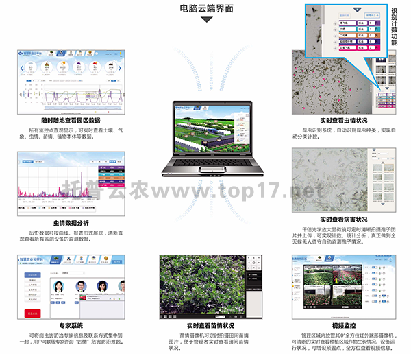 系統(tǒng)集成病蟲(chóng)害及環(huán)境監(jiān)測(cè)設(shè)備,可在WEB端或手機(jī)APP端遠(yuǎn)程實(shí)時(shí)在線查看監(jiān)測(cè)區(qū)域環(huán)境、蟲(chóng)情、病害信息,并提供專(zhuān)家指導(dǎo)。