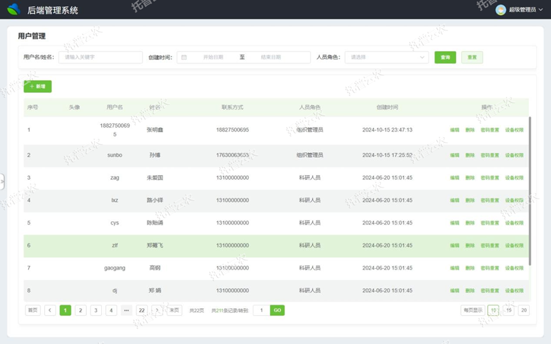 (1)科研數(shù)據(jù)管理:支持課題數(shù)據(jù)、品種數(shù)據(jù)、種植數(shù)據(jù)、試驗數(shù)據(jù)錄入,支持數(shù)據(jù)增刪改查;支持圖片jpg格式,視頻MP4格式上傳;支持數(shù)據(jù)展示在駕駛艙大屏端;支持人工氣候室種植使用數(shù)據(jù)系統(tǒng)自動計算;